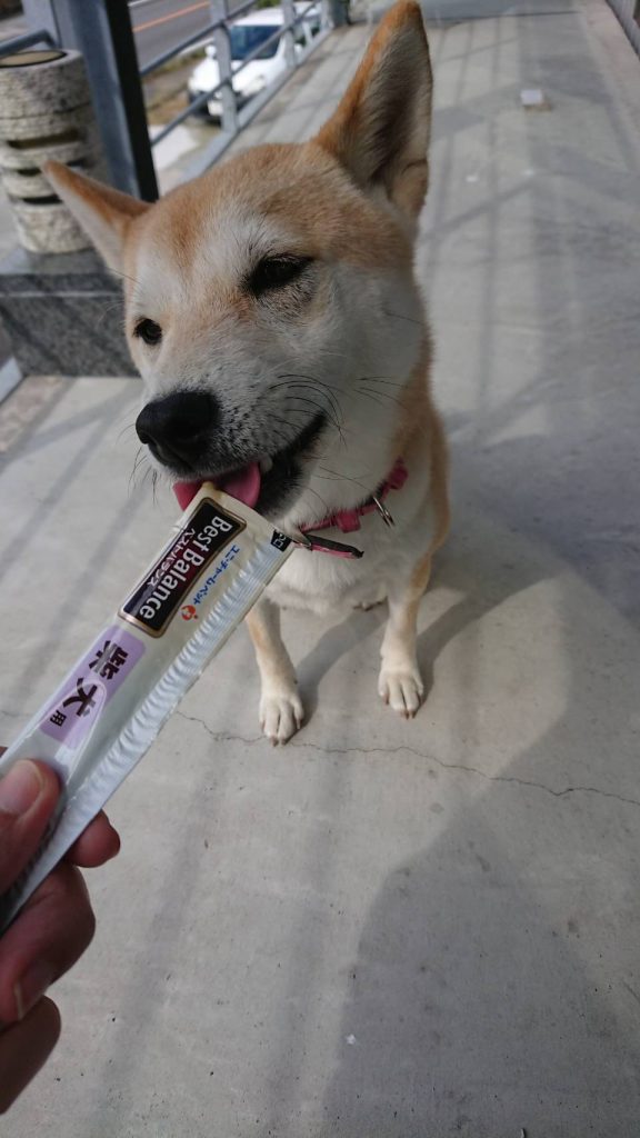 柴犬用チュルチュル、大好物です?