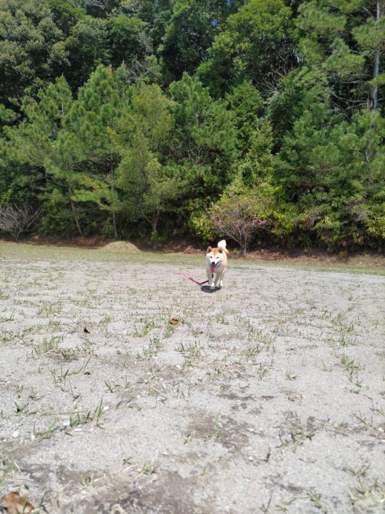 はなこの日常 ドッグラン芝刈りの邪魔